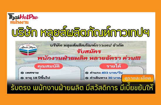 #ข่าวสมัครงาน รับสมัครพนักงาน บริษัท หลุยส์ผลิตภัณฑ์กาวเทป จํากัด รับตรงไม่ผ่านซัพ พนักงานฝ่ายผลิต มีสวัสดิการ มีเบี้ยขยันให้ ชลบุรี