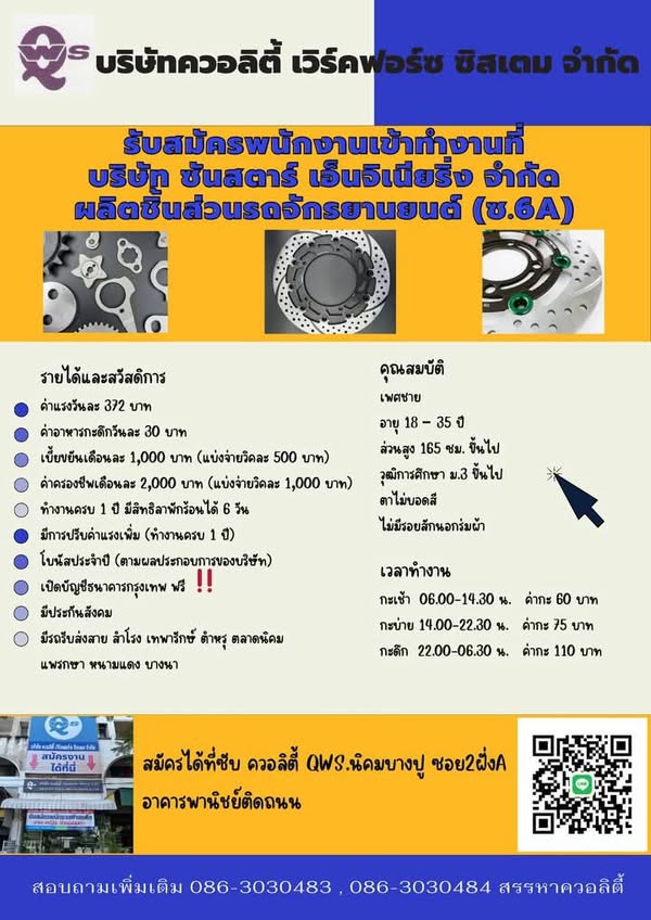 77605 Views#ข่าวสมัครงาน รับสมัครพนักงาน บริษัท ซันสตาร์ เอ็นจิเนียริ่ง (ประเทศไทย) จำกัด